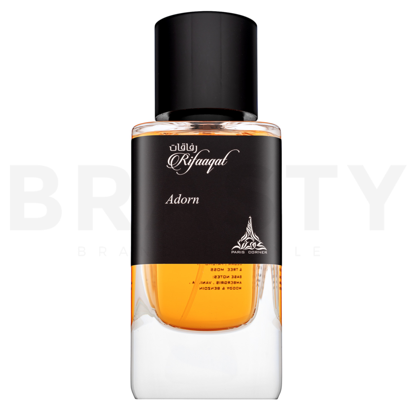 U srcu mirisa razvija se topla elegancija cedra i pačulija, koji dodaju dubinu, dok mahovina donosi prirodnu svježinu. Rifaaqat Adorn je za one koji cijene složenost i žele se izdvojiti. Paris Corner je poznat po svojoj sposobnosti kombiniranja tradicionalnih i modernih elemenata, što se odražava i u ovom mirisu, koji spaja klasične drvenaste tonove s modernim akordima.